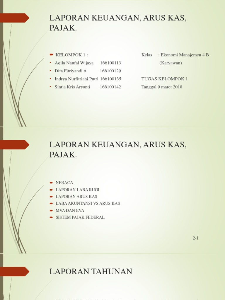 Bab 2 Laporan Keuangan Arus Kas Dan Pajak Tujuan Ppt