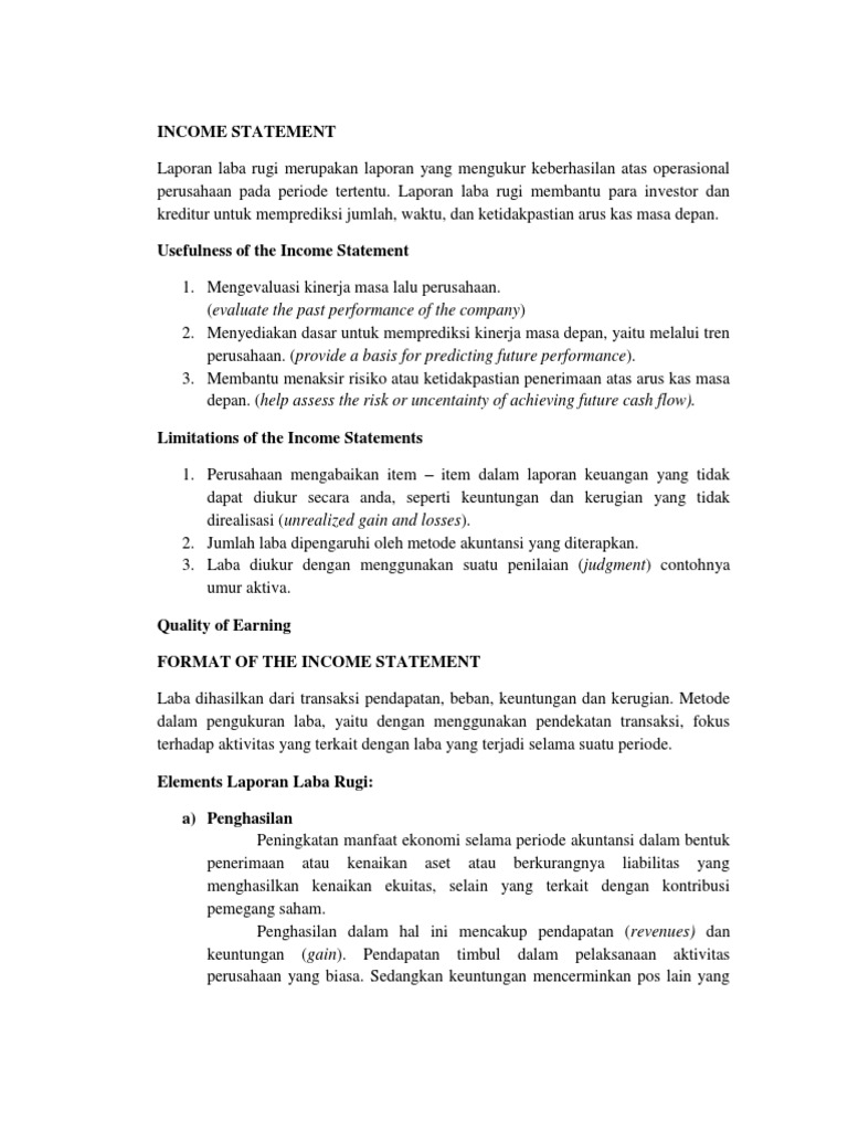 Apa Yang Dimaksud Dengan Laporan Laba Rugi Atau Income