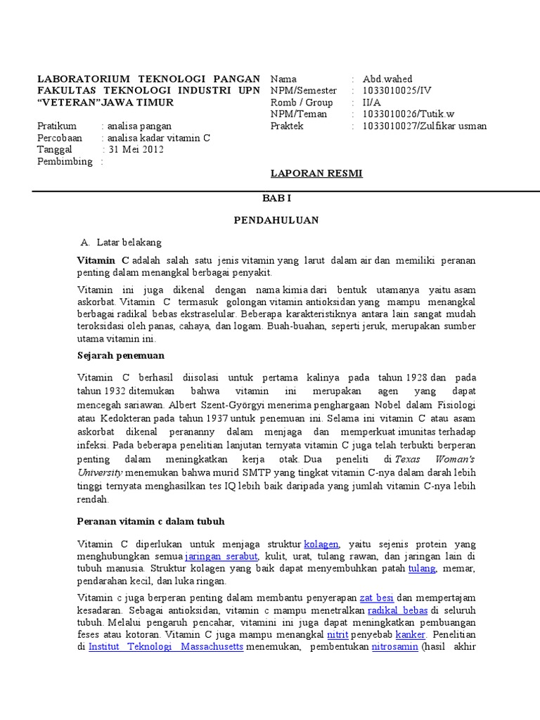 Laporan Praktikum Vitamin C Pdf Free Download