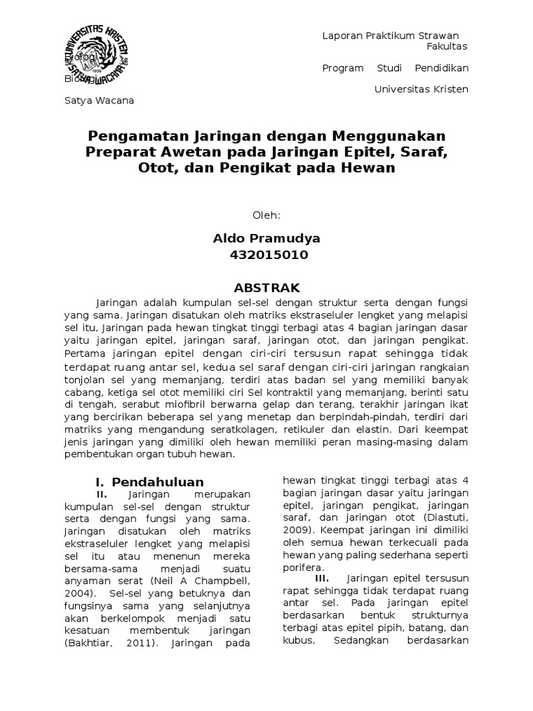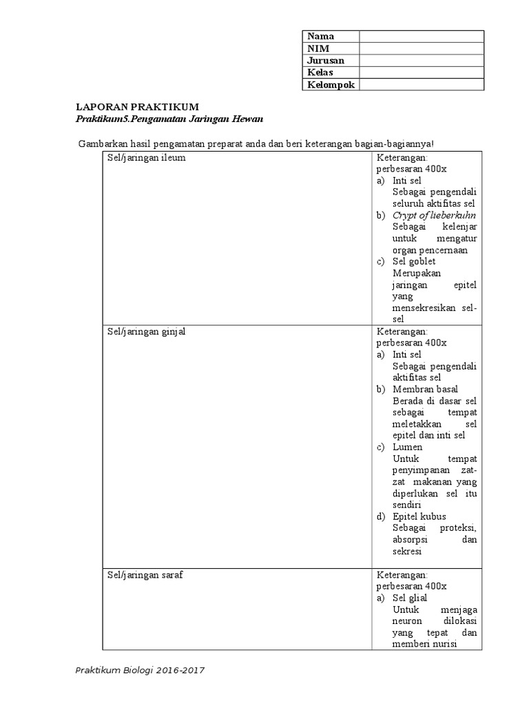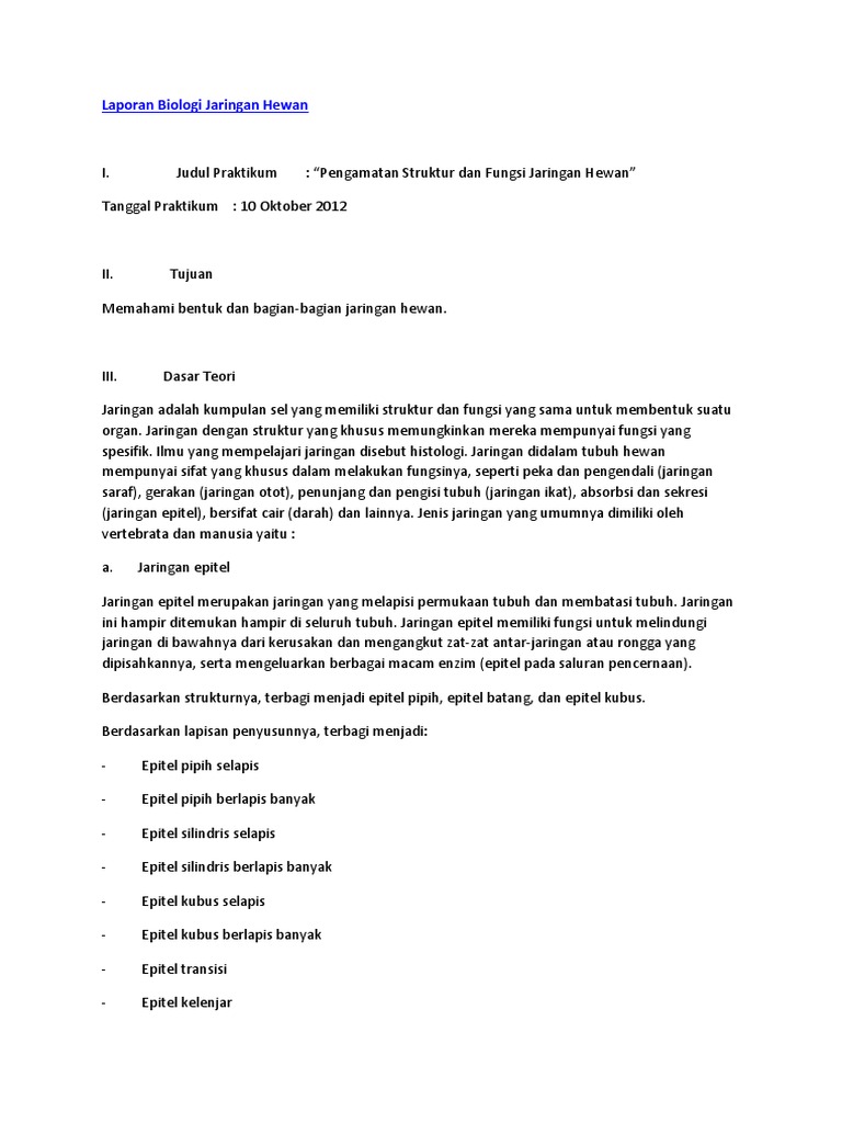 Pdf Laporan Praktikum Biologi Umum Jaringan Pada Hewan