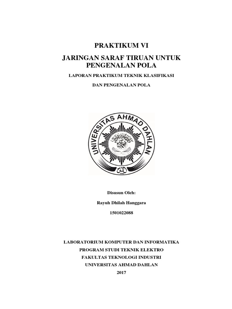 Laporan 6 Praktikum Teknik Klasifikasi Dan Pengenalan Pola